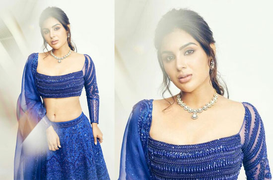 Samyuktha Menon, a popular actress and model, recently shared some breathtaking pictures that left her fans in awe. The pictures showcased her stunning and glamorous appearance as she donned a blue embroidered full-sleeved blouse with a matching lehenga, dupatta, and exquisite jewellery.
