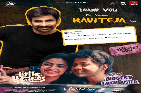 The movie "Little Hearts," starring Mauli Thanuj and Shivani Nagaram, has become a huge success since its recent release. The film is not only receiving great appreciation from the audience but also from celebrities. Celebrities like Vijay Deverakonda, Nani, Naga Vamsi, Sai Rajesh, and director of 'Tourist Family' Abhishan Jivanth have already praised the film. Recently, Mass Maharaja Ravi Teja also tweeted his appreciation for the film. He tweeted, 'Heart, humor, honest performances... everything about this movie is top-notch. My best wishes to the entire team of the film.'