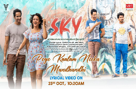 Poyekaalam Neeku, the latest lyrical track from the upcoming feel-good romantic film "Sky," has been released and is already captivating the audience with its heartfelt melody. Starring Murali Krishnam Raju, Shruti Shetty, and Anand in the lead roles, "Sky" is a venture under the Valour Entertainment Studios banner, produced by Nagireddy Guntaka, Srilakshmi Guntaka, Murali Krishnam Raju, and Prudhvi Pericherla, who also directs the film.