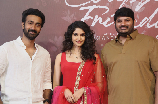 Santosh Soban leads Couple Friendly opposite Manasa Varanasi, a lush musical romantic drama from UV Concepts (Telugu/Tamil production) and presented by UV Creations. Ajay Kumar Raju P. co-produces, Ashwin Chandrasekhar directs. Hitting screens February 14 (Valentine’s Day), Dheeraj Mogilineni distributes in Andhra Pradesh and Telangana. Hyderabad hosted the lively pre-release event.