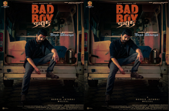 The attention-grabbing title, Bad Boy Karthik, perfectly reflects the intense nature of Naga Shaurya's character. The first look poster presents him in a fierce avatar, sitting defiantly on the back of a van with a piercing gaze. His forehead bears a blood marking in the traditional "3 Govinda Namalu" style, and bloodstains are visible on his hands, hinting at the film's action-packed narrative. The word "BAD" has been conspicuously removed from the "Hyderabad" written on the van, subtly emphasizing the character's rebellious nature and the film's gritty tone.