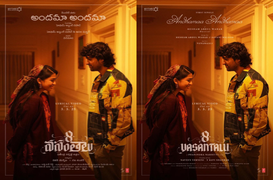 Having already generated buzz with its first look poster, glimpse, and teaser, "8 Vasantalu" is now set to kickstart its music promotions. The first single, titled "Andama Andama," is scheduled for release on March 3rd. Composed by the renowned musician Hesham Abdul Wahab, the song promises to be a chart-topping melody. Penned by Vanamali, "Andama Andama" is sung by Hesham Abdul Wahab and Avani Malhar. The announcement poster showcases the beautiful chemistry between the lead pair, further amplifying the anticipation.